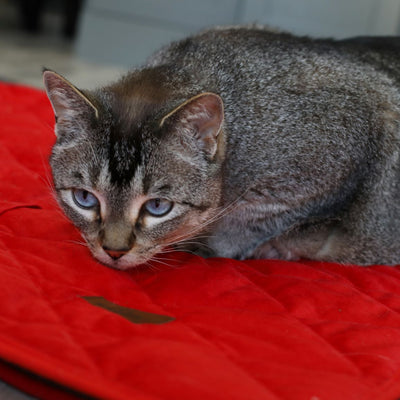 Large lightweight red velvet cat blanket can be used year round. Size 40x25 inches. Fits multiple cats.